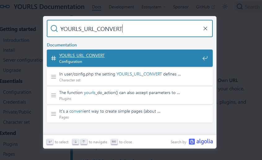 The whole YOURLS documentation now lives at docs.yourls.org and boy this is neat. Powered by modern and lightning fast Vuepress, this documentation has two nice benefits for users: