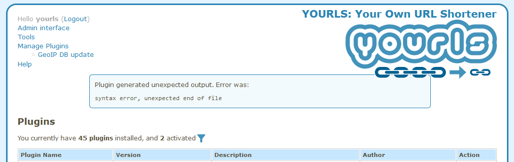 Broken plugin != broken YOURLS